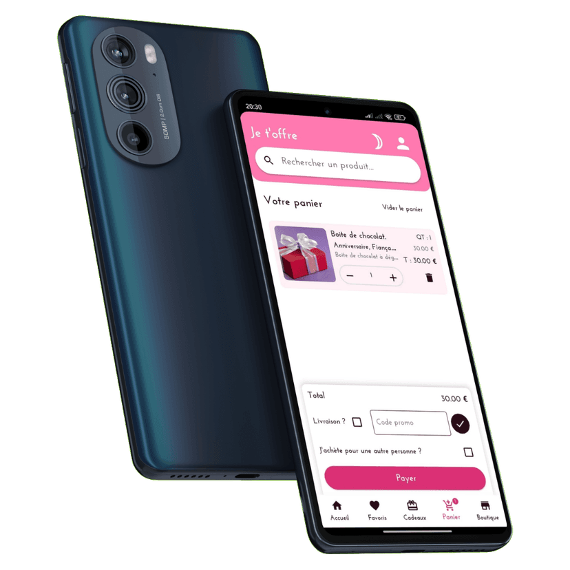 Plus qu'une application e-commerce, Je t'offreest le pont entre votre envie d'offrir et l'émotion de vos proches. Choisissez un cadeau, validez, et nous nous occupons de créer l'étincelle instantanément via WhatsApp.